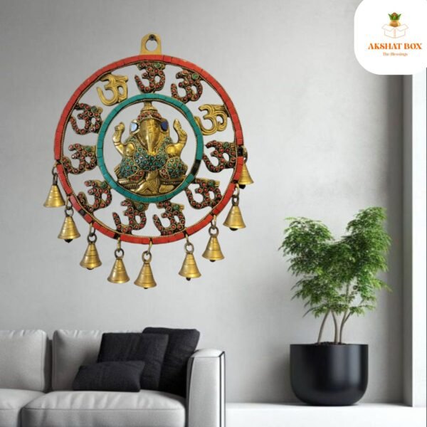 AKSHATBOX Stone Ganesh Wall Hanging with Bell – 11”