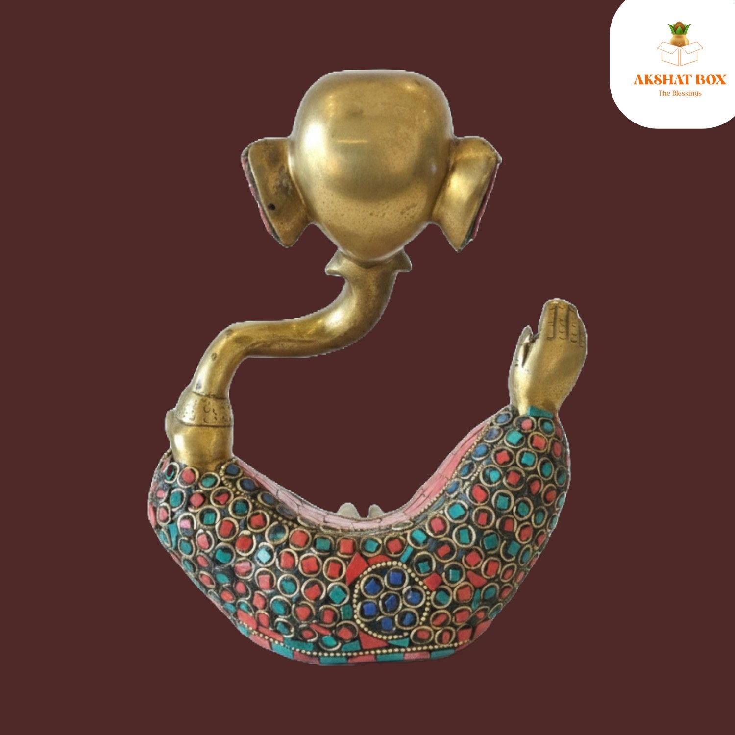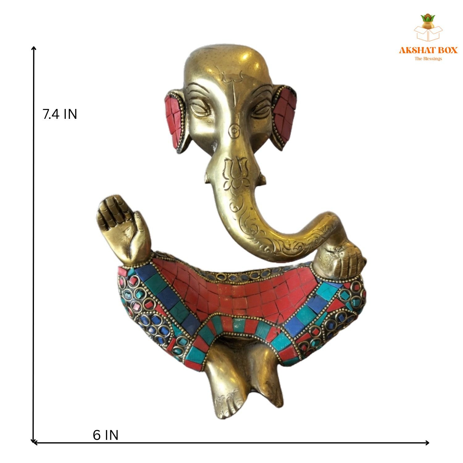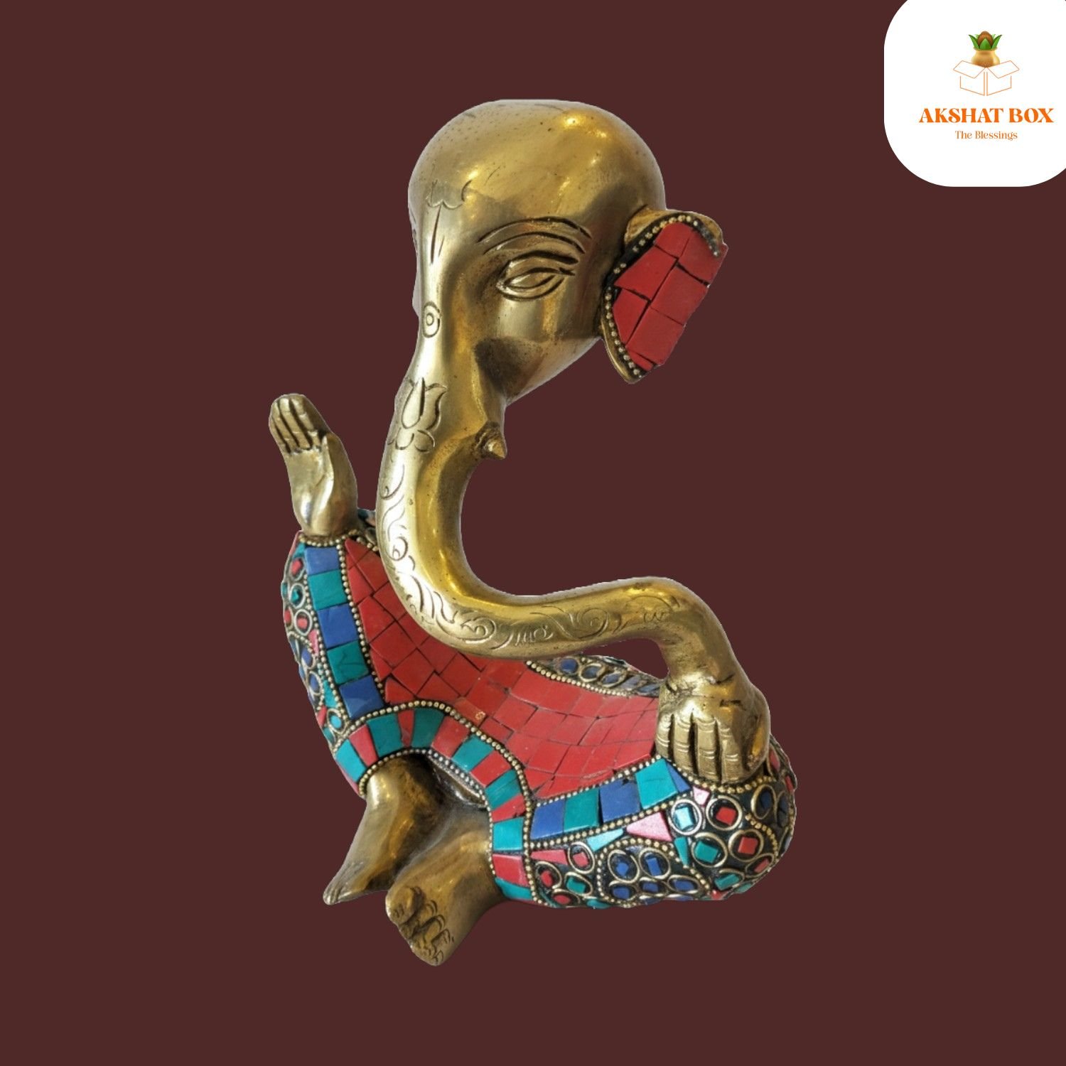 AKSHATBOX Antique Stone Work Brass Ganesha Idol – A Symbol of Wisdom, Prosperity & Divine Blessings ✨Dimension : Height-7.4″ ,Width-6″