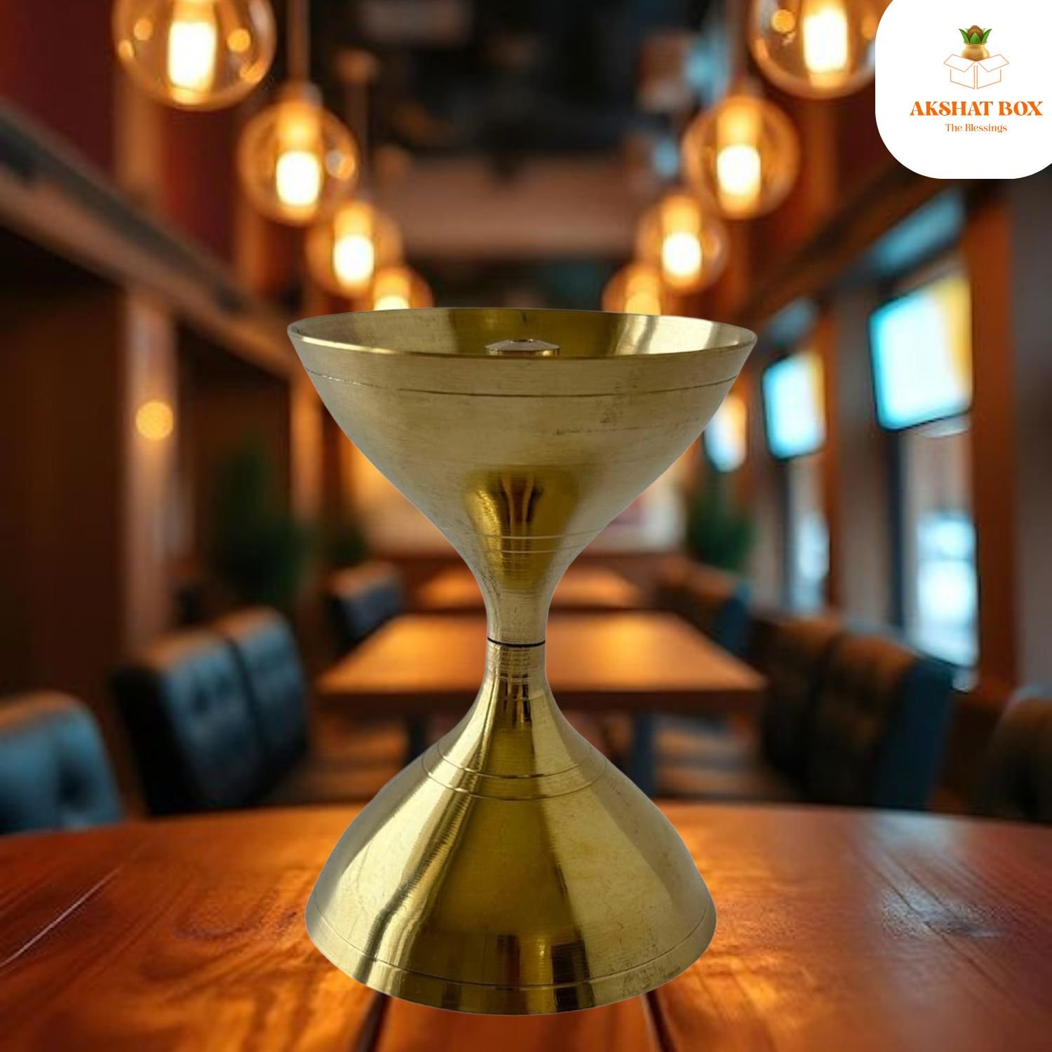 Illuminate your sacred space with the Akshatbox Brass Akhand Jyoti Diya, a masterpiece crafted to radiate divine energy and positivity. With its timeless design and unwavering flame, this diya represents the eternal presence of light, purity, and devotion in Hindu traditions. The handcrafted deepam, standing at 5 inches high, is made from premium brass, ensuring long-lasting durability and a radiant golden glow.