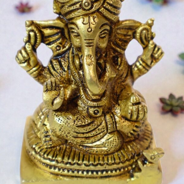 Brass Antique Ganesh Idol with Dholak – The Rhythmic Blessings of Ganesha