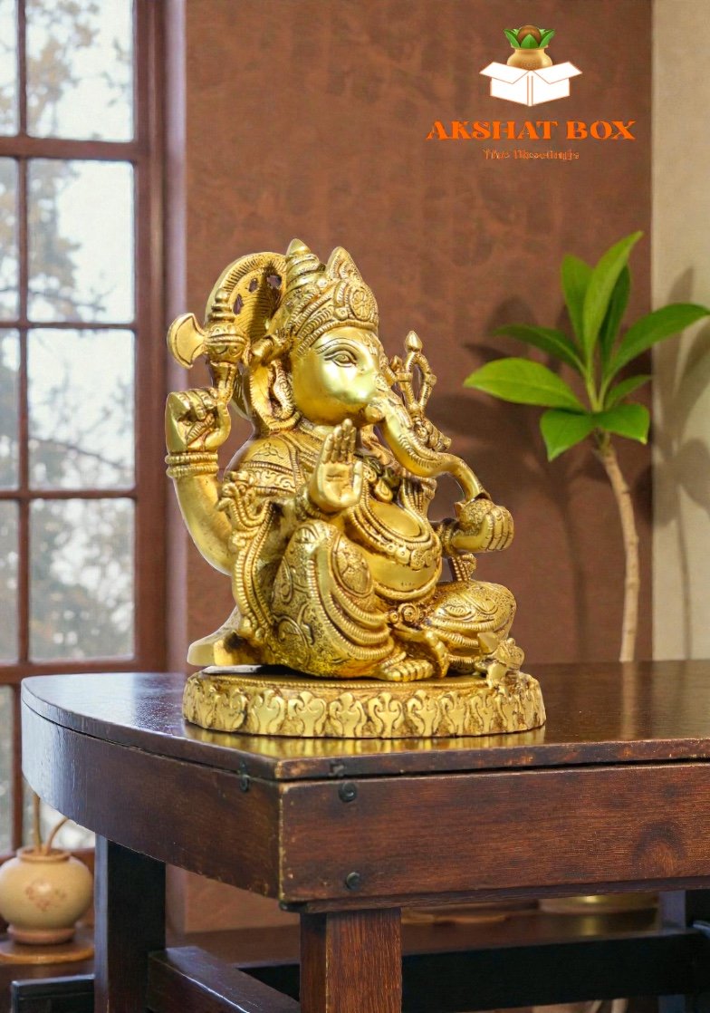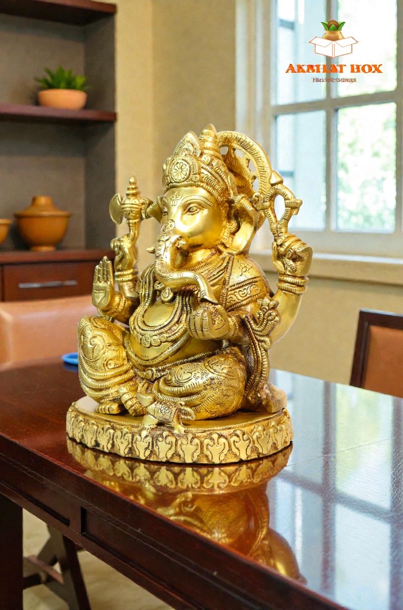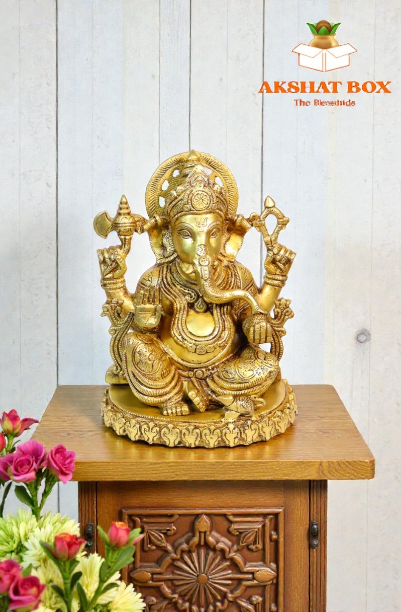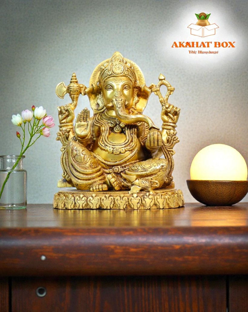 Enhance your surroundings with the majestic presence of the AkshatBox Brass Ganesh Murti—a timeless symbol of faith, grace, and prosperity.