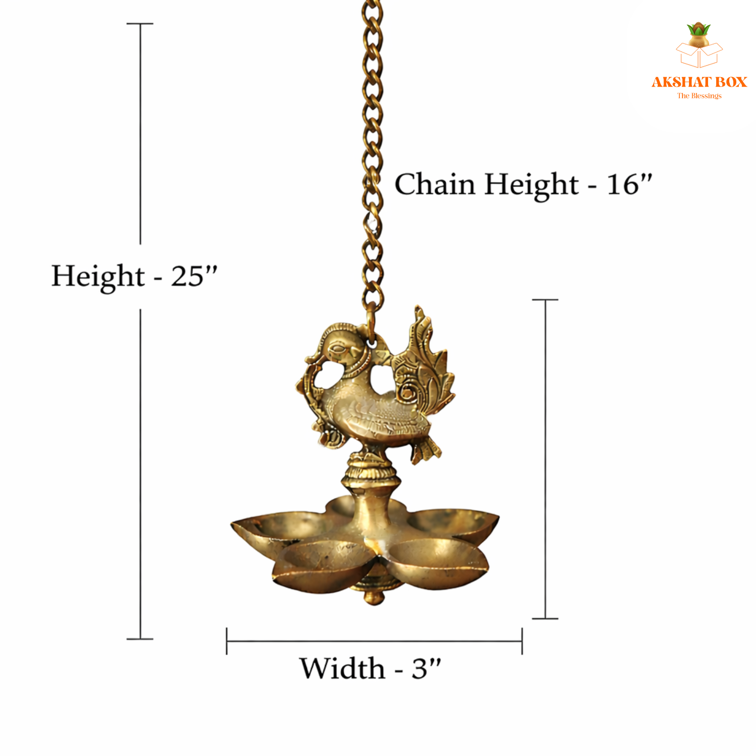Dimension : Height-25” ,Width-3”,Chain Height-16”,Diya-2.2”
