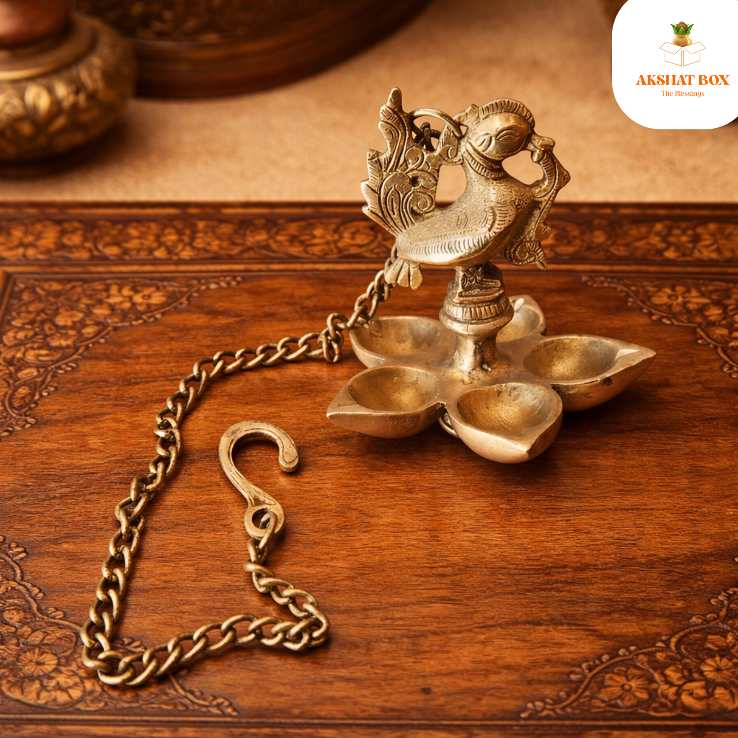 Suspended from a beautifully designed brass chain, this hanging diya is perfect for home temples, pooja rooms, or entrances, radiating divine warmth and tradition with every flicker of flame.