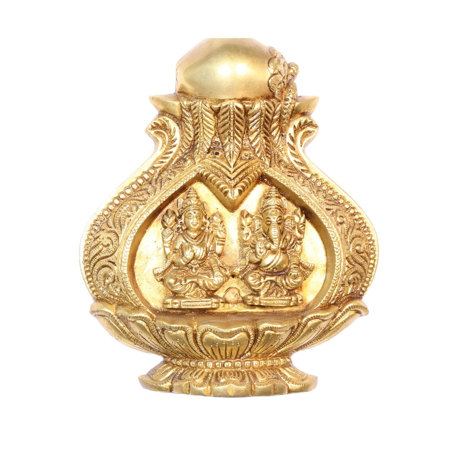 Brass kalash WallHanging Engraved with Laxmi Ganesha