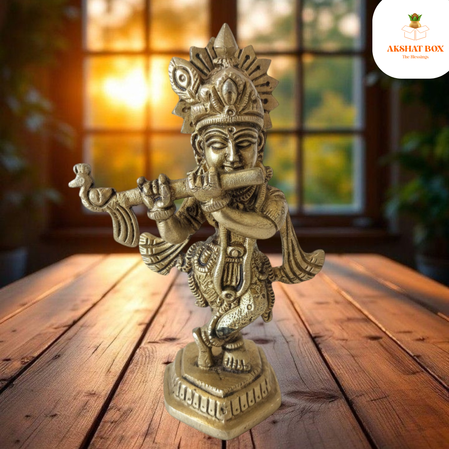 ✨ Bring home this divine AKSHATBOX Brass Krishna with Flute and experience the blessings of love, peace, and devotion every day. ✨
