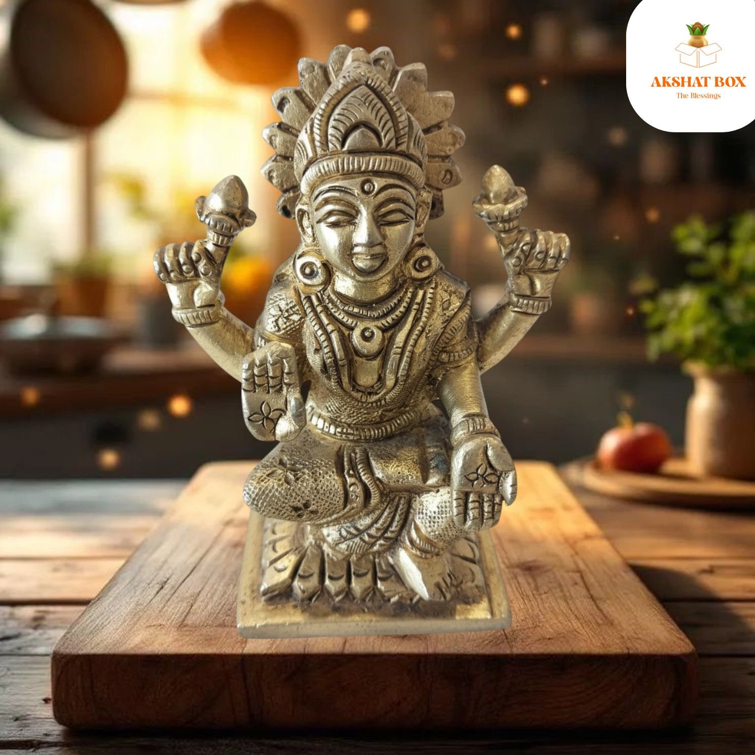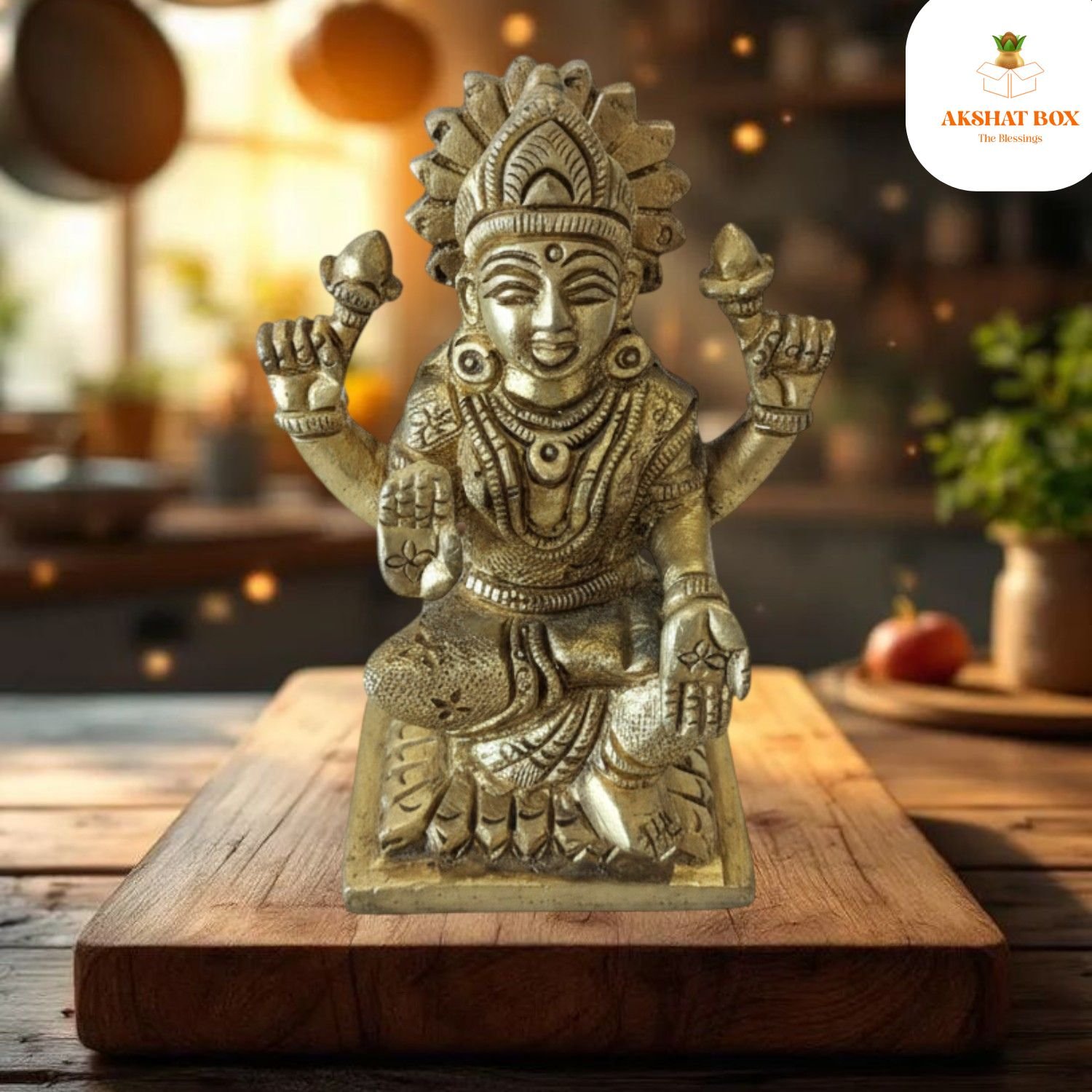 ✨ Invite Divine Wealth & Positivity into Your Home with the AKSHATBOX Brass Laxmi on Singhasan – Order Now!