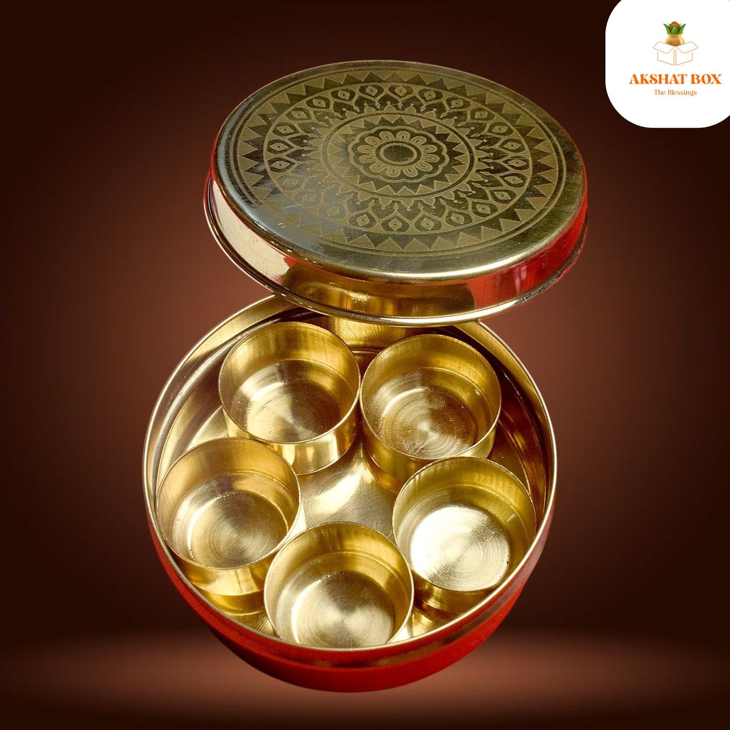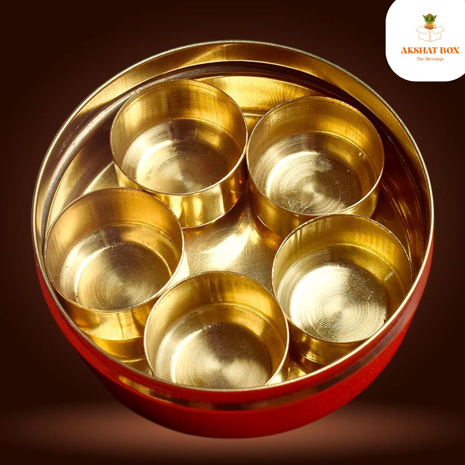 ✨ Add a touch of timeless elegance to your kitchen with the Akshatbox Brass Mini Masala Box – Order yours today! ✨