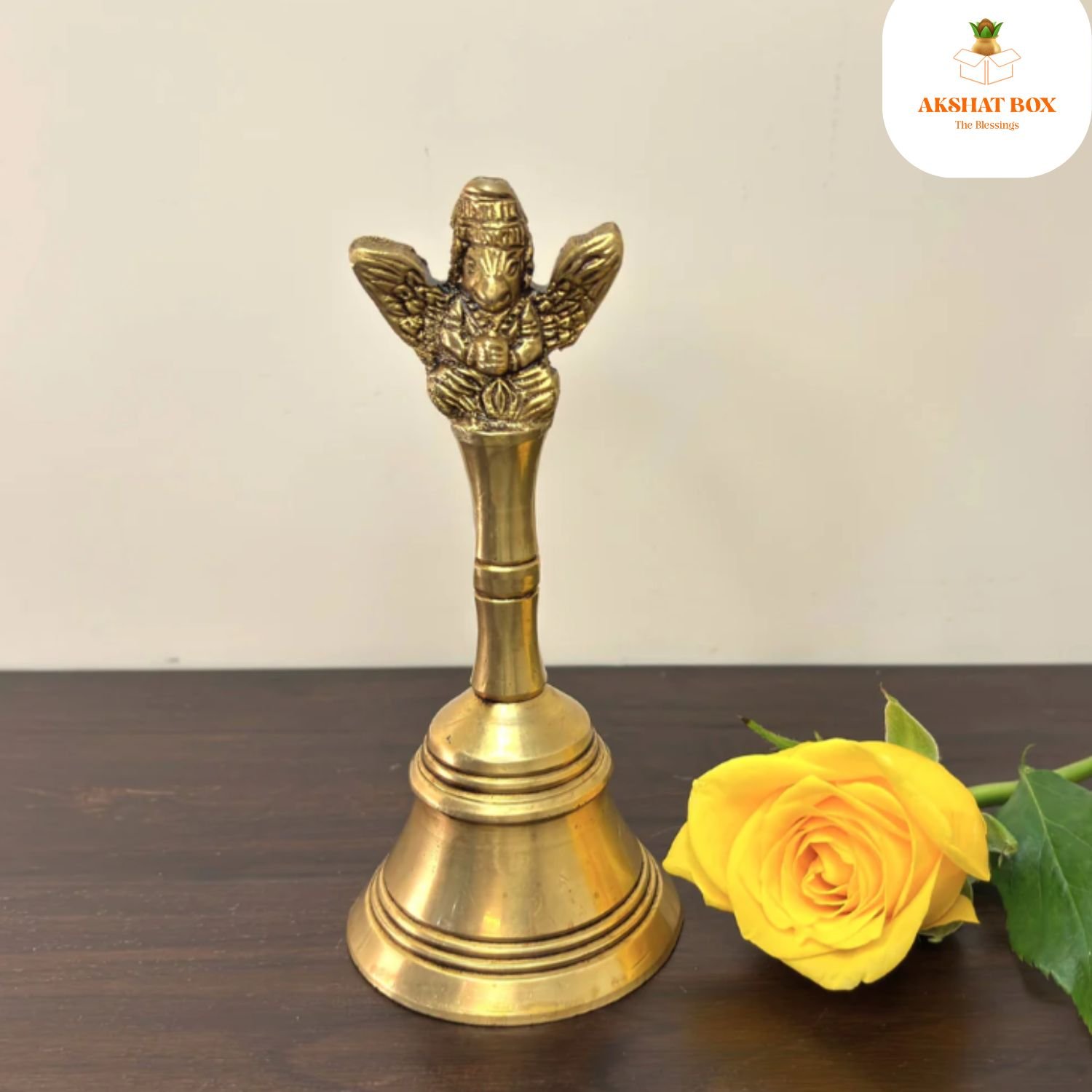 Brass Pooja Bell with Garun Sitting On Top / Pure Brass Garuda Ganti