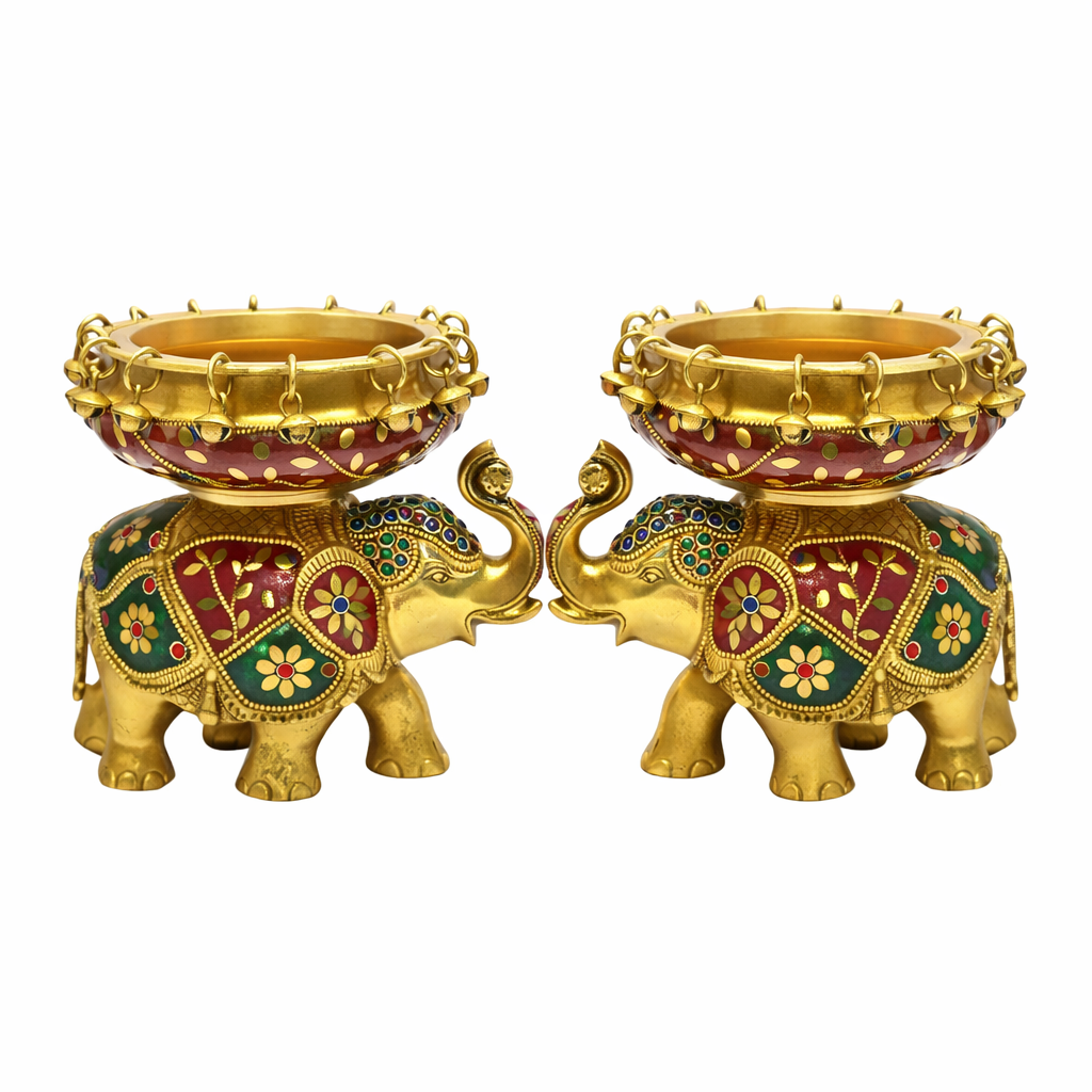 AKSHATBOX Brass Urli on Elephant with Meenakari Work