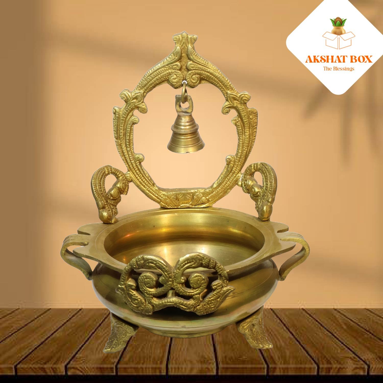 ✨ Bring divine elegance into your home with the radiant aura of this Brass Urli with Bell Design & Stand by AKSHATBOX. Let its presence transform your space into a sanctuary of peace and tradition.