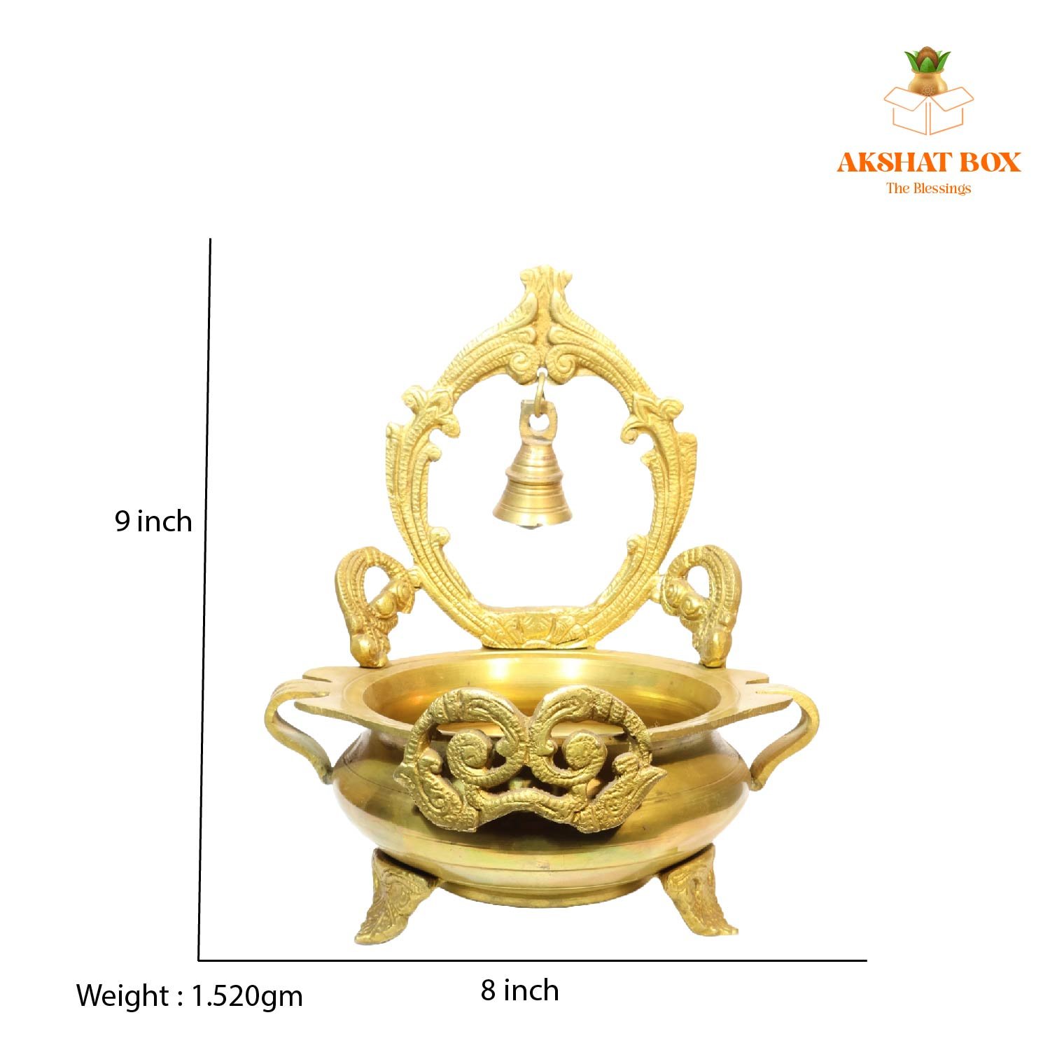 Elevate your space with the traditional charm of the Brass Urli with Bell Design, elegantly placed on a handcrafted brass stand. This exquisite piece by AKSHATBOX merges devotional art with elegant home décor. With a beautifully embossed design, ornamental bells, and a balanced stand, it exudes serenity, tradition, and timeless beauty.