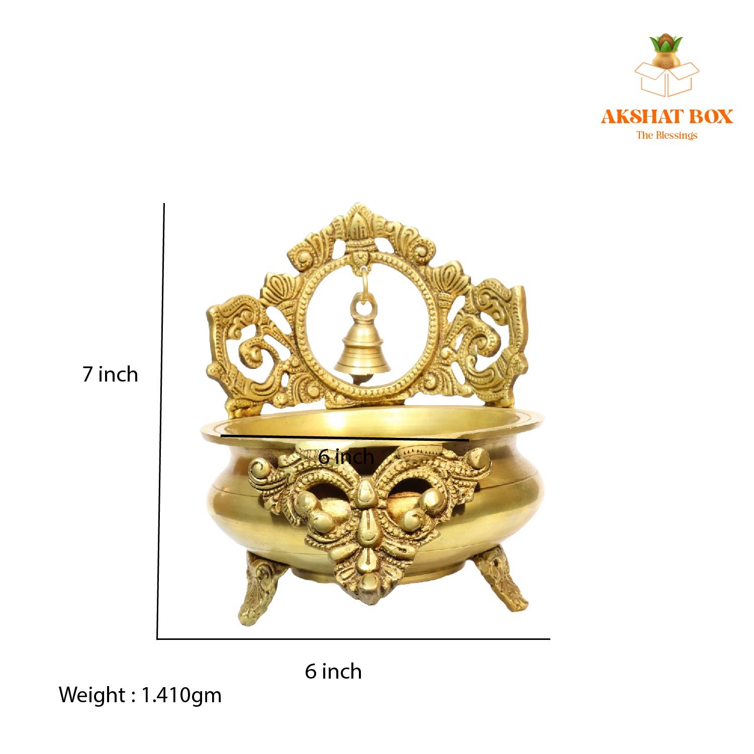 AKSHATBOX Brass Urli with Bell Hanging in Center