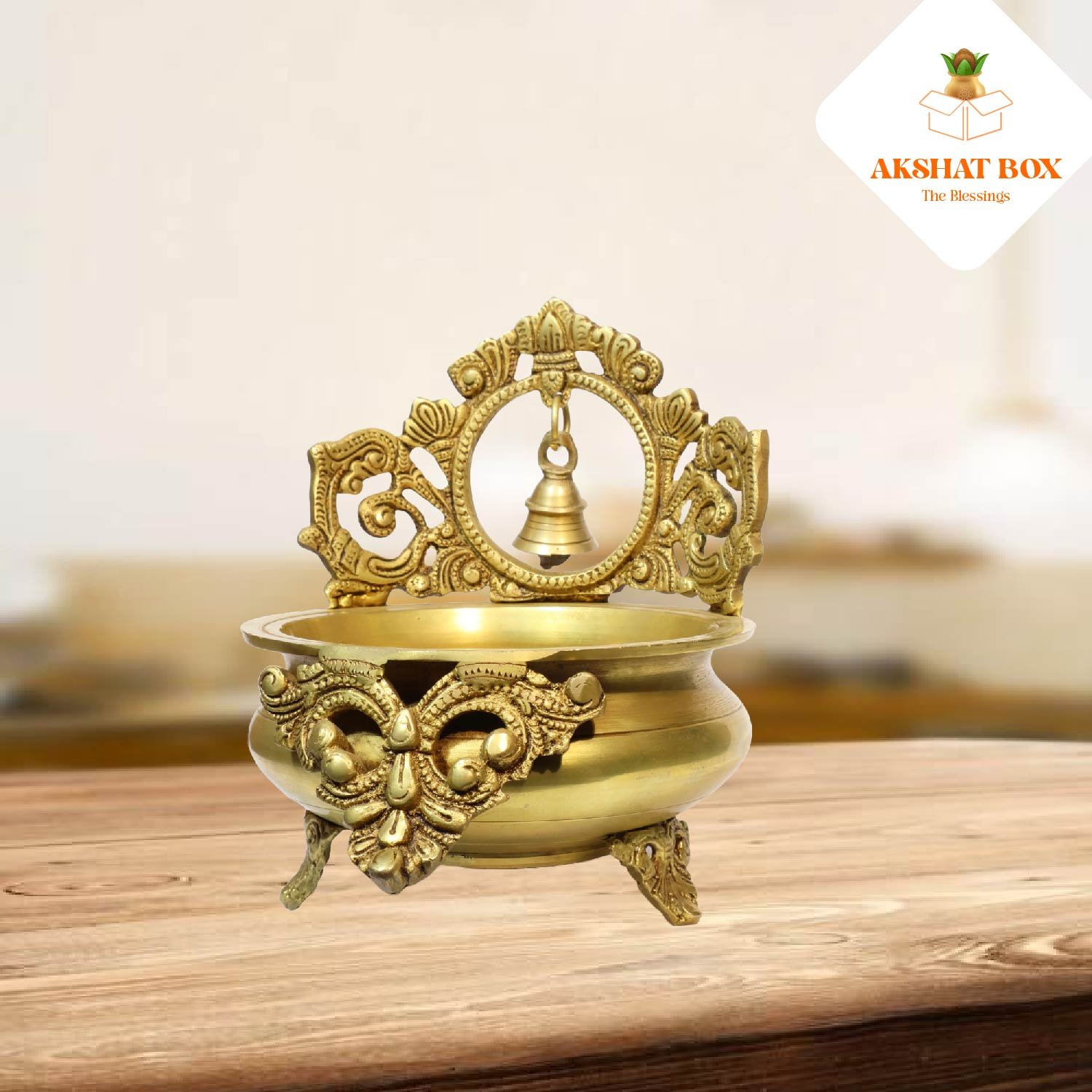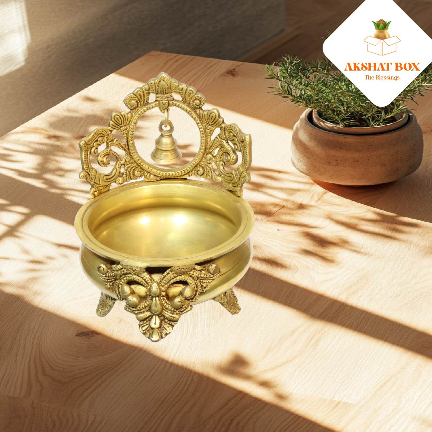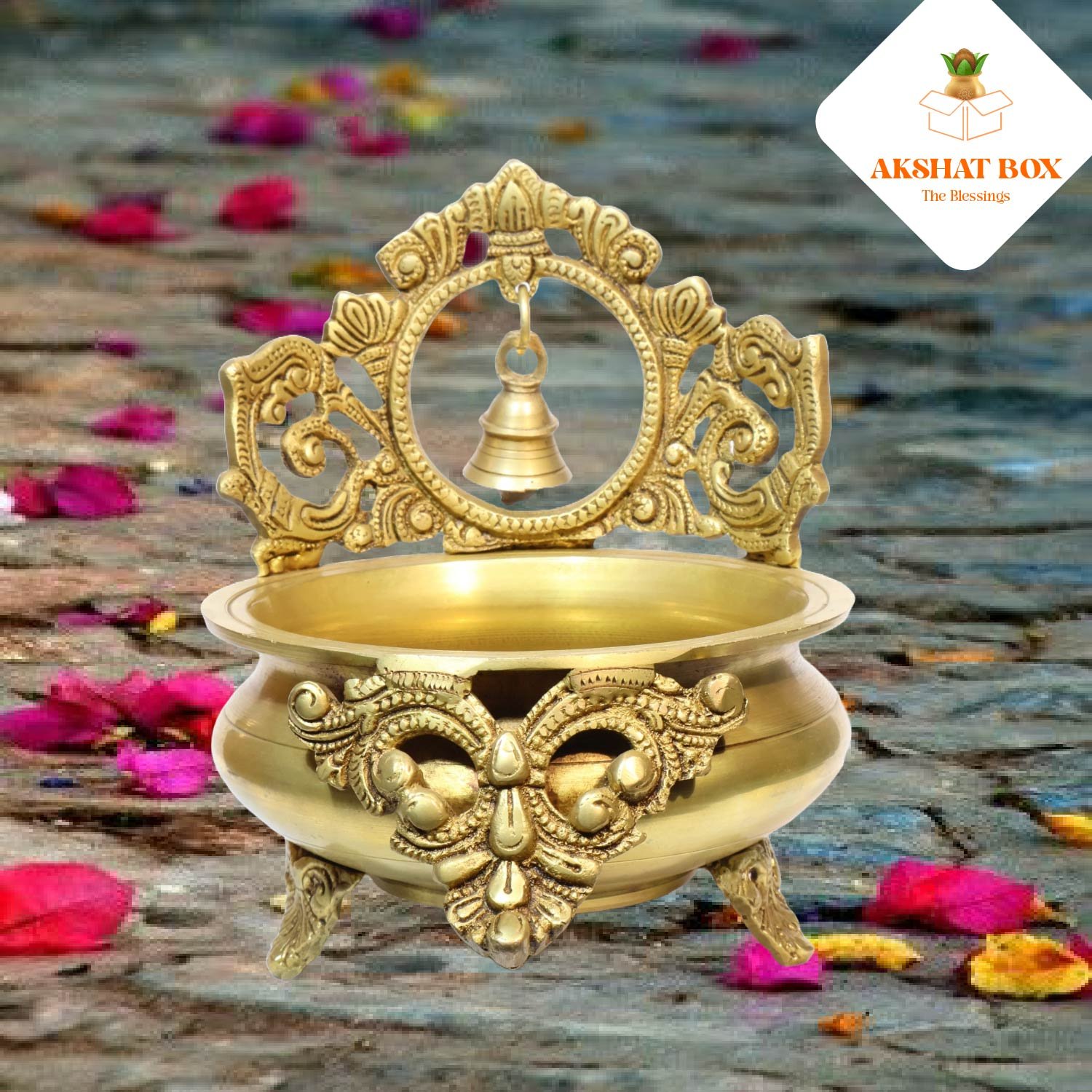 ✨ Bring home this AKSHATBOX Brass Urli with Bell Hanging to infuse your space with tradition, divinity, and timeless beauty. ✨