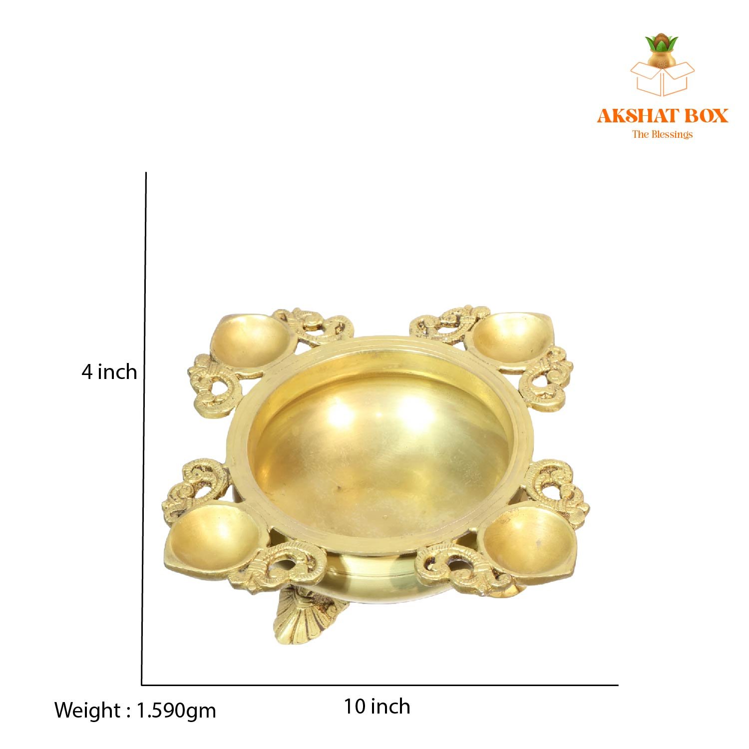 Brass Urli with Four Diya Holder Design – A Regal Blend of Tradition and Elegance