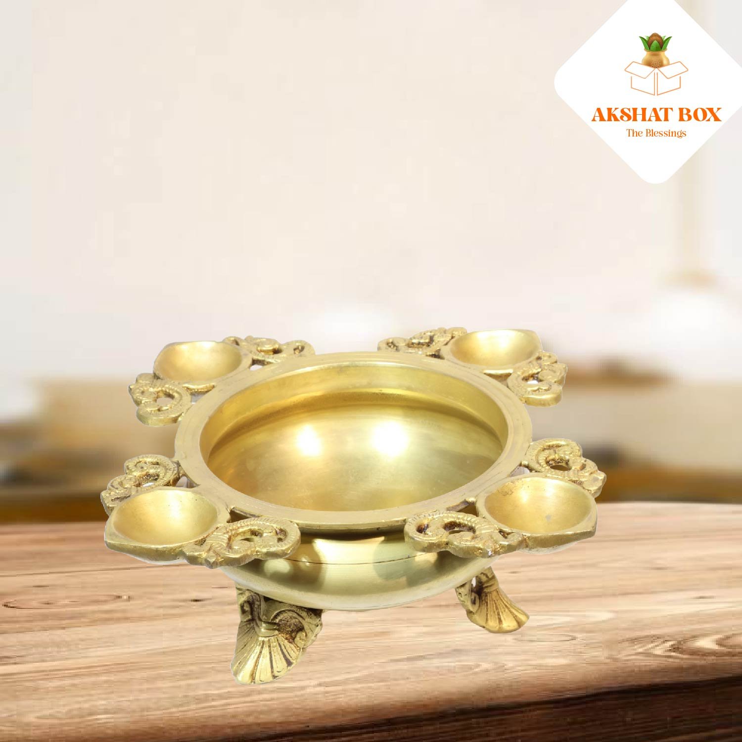 🌼 Add a touch of tradition, light, and luxury to your home with the AKSHATBOX Brass Urli with Four Diya Holders. Invite blessings, beauty, and balance into every celebration.