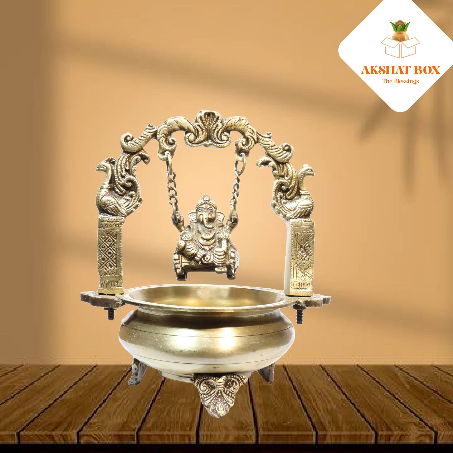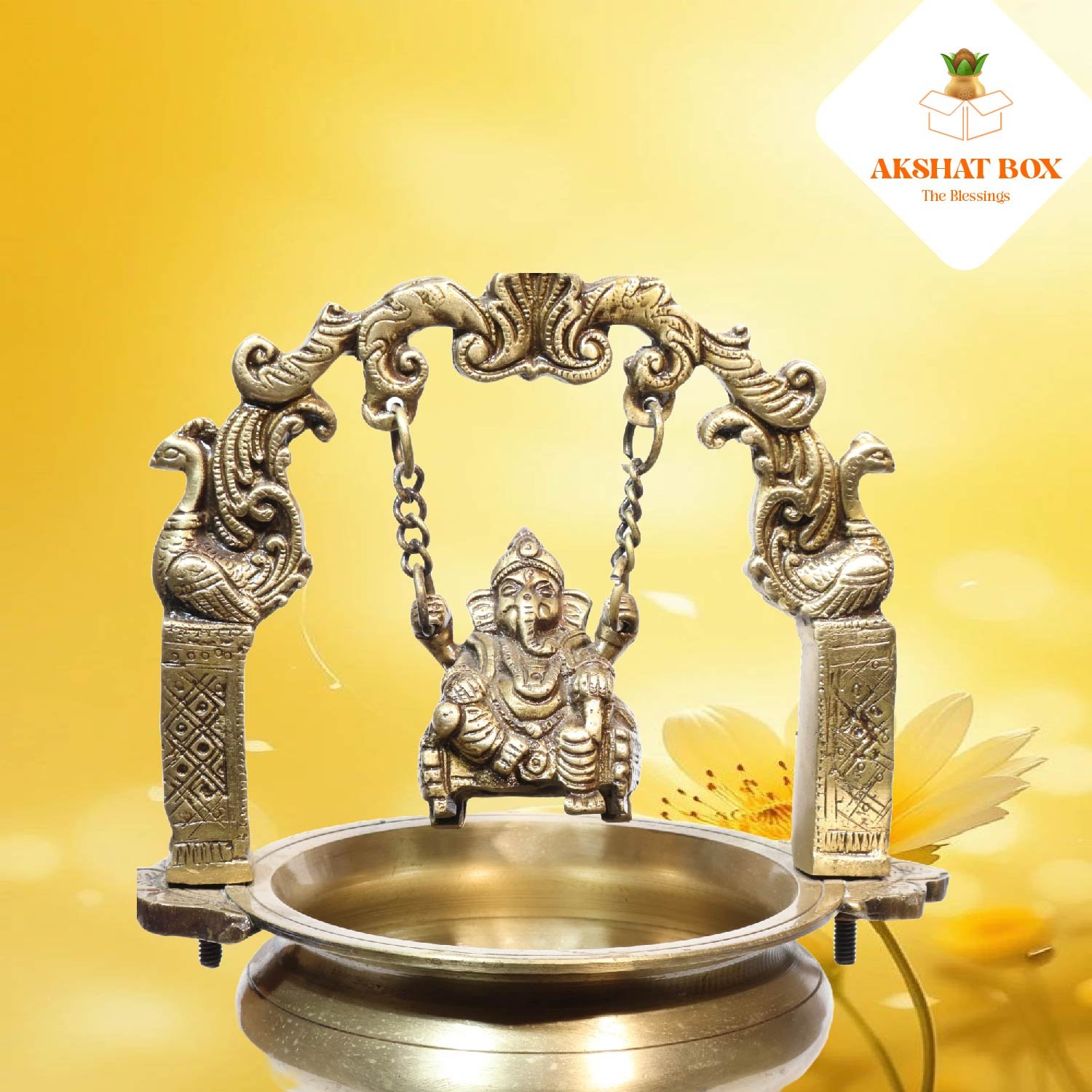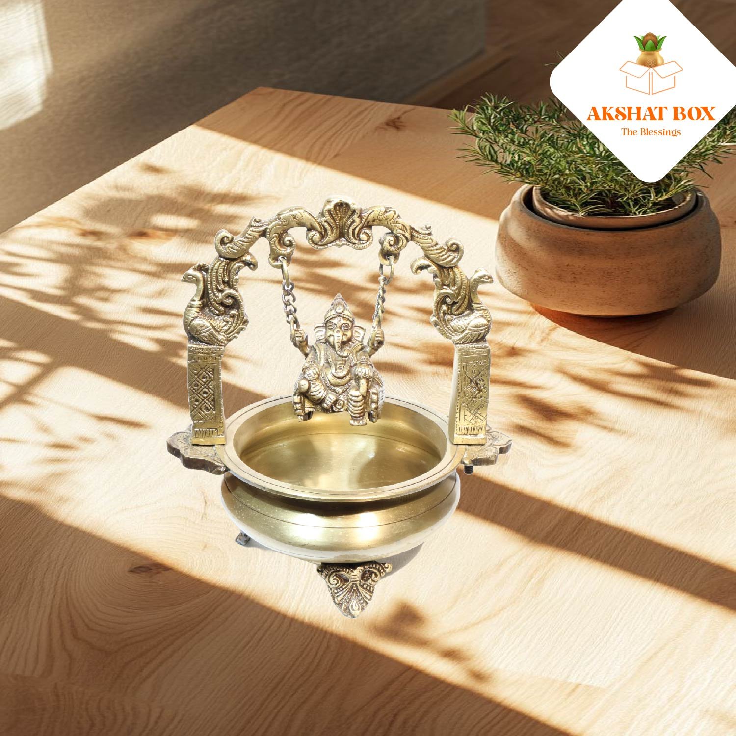 ✨ Elevate your space with divine charm – Bring home the AKSHATBOX Brass Urli with Ganesha Hanging and embrace peace, prosperity, and spiritual energy!