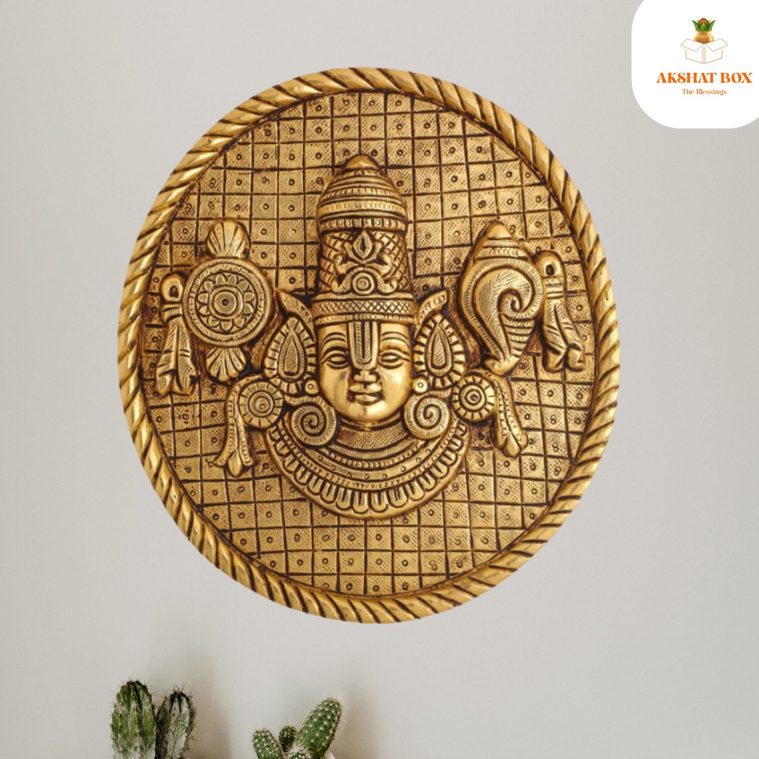 AKSHATBOX Brass Wall Hanging Balaji (Round Shaped)