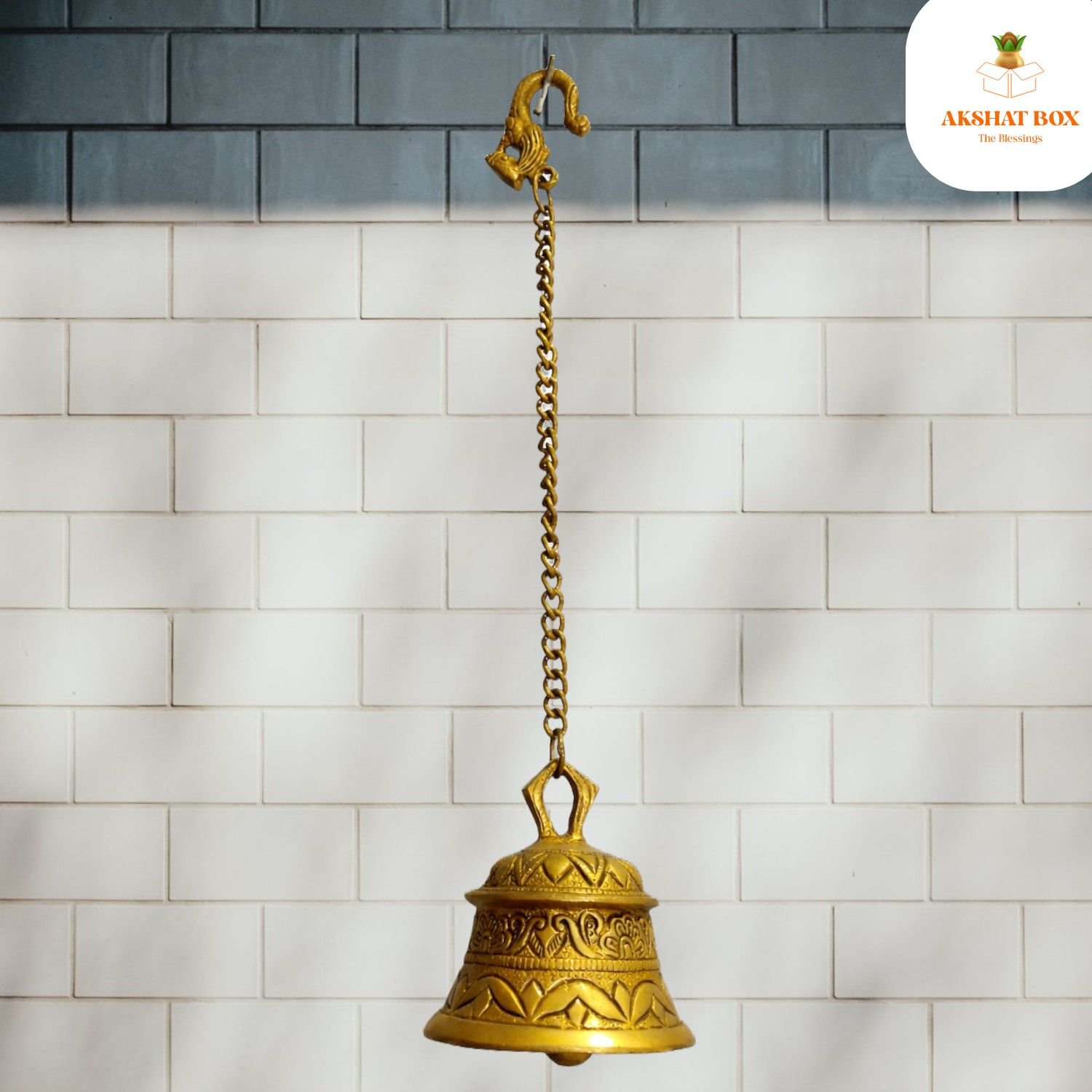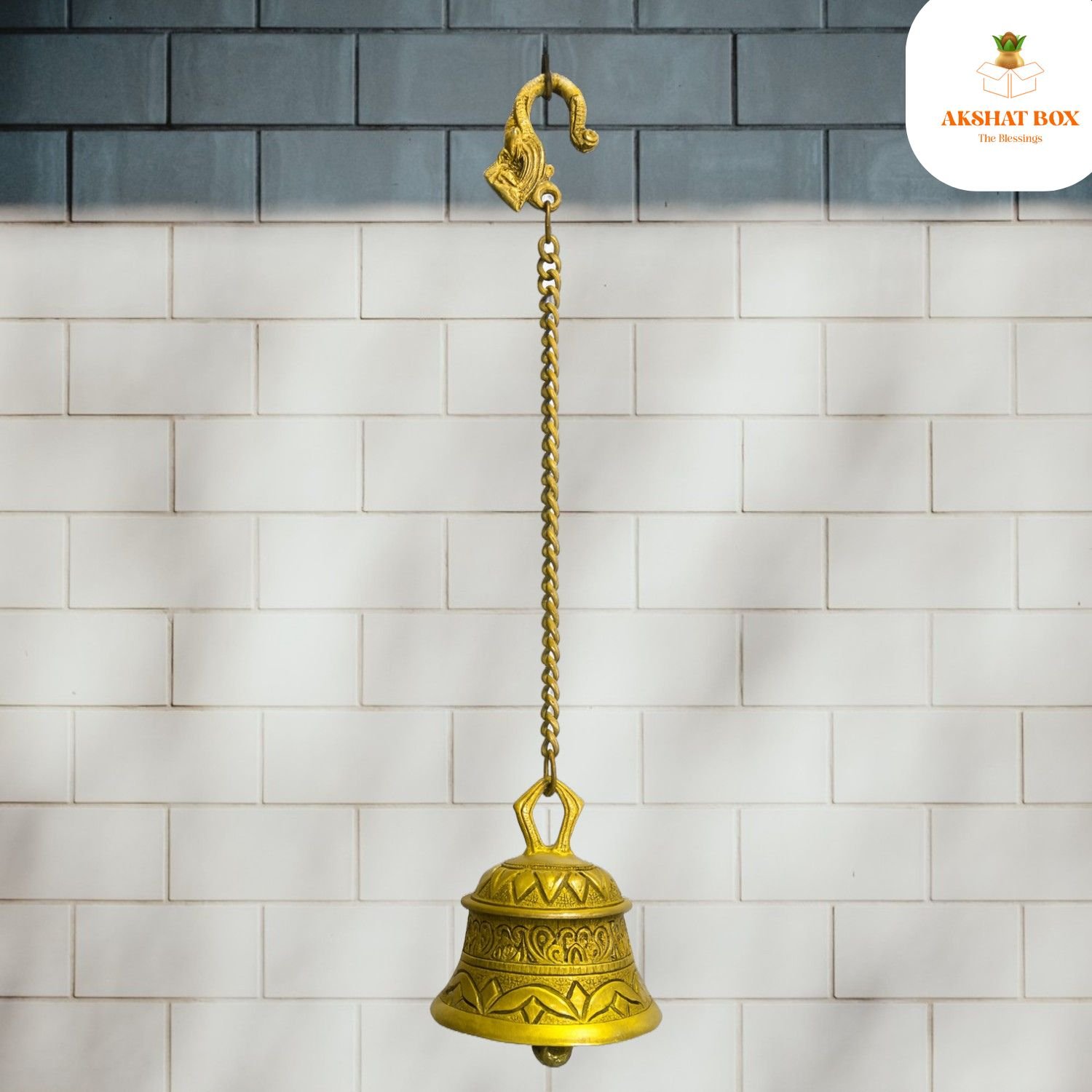AKSHATBOX Engraved Brass Pooja Bell