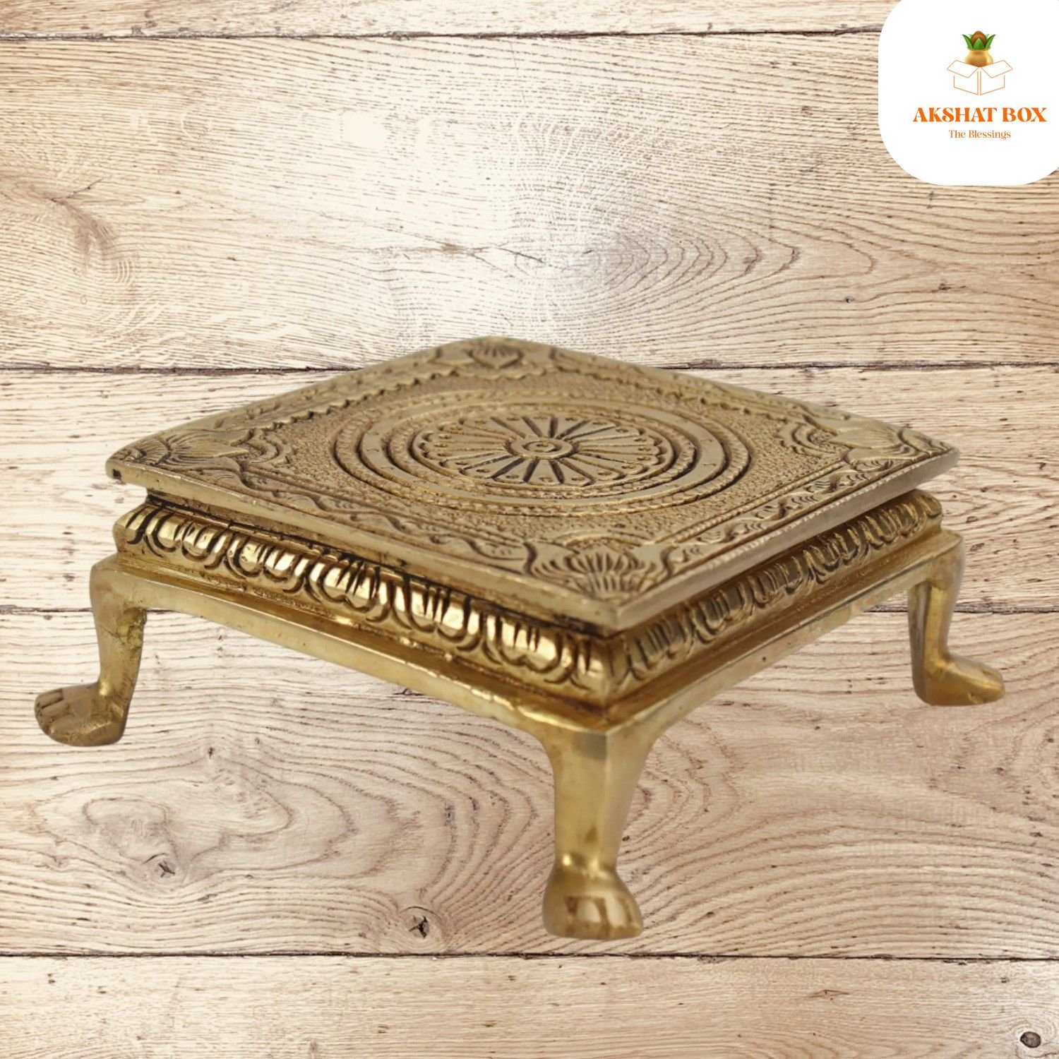 The Ethnic Antique Pedestal Chowki is a beautifully crafted miniature table, perfect for pooja rituals, home décor, and religious ceremonies. Designed with intricate engravings and an antique finish, this versatile chowki serves as an ideal base for idols, diyas, sacred objects, or decorative accents. Its compact size and sturdy brass construction make it a timeless addition to any spiritual or aesthetic setting.