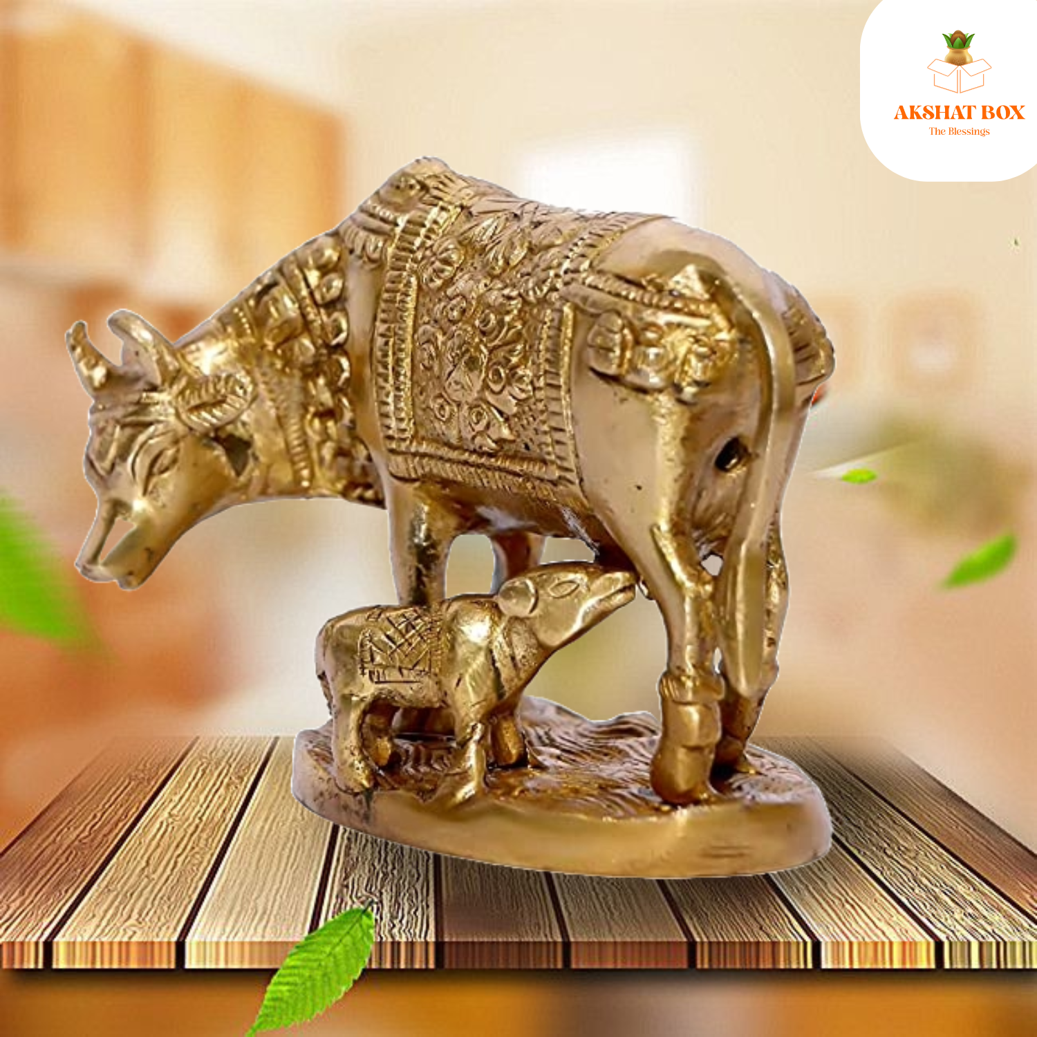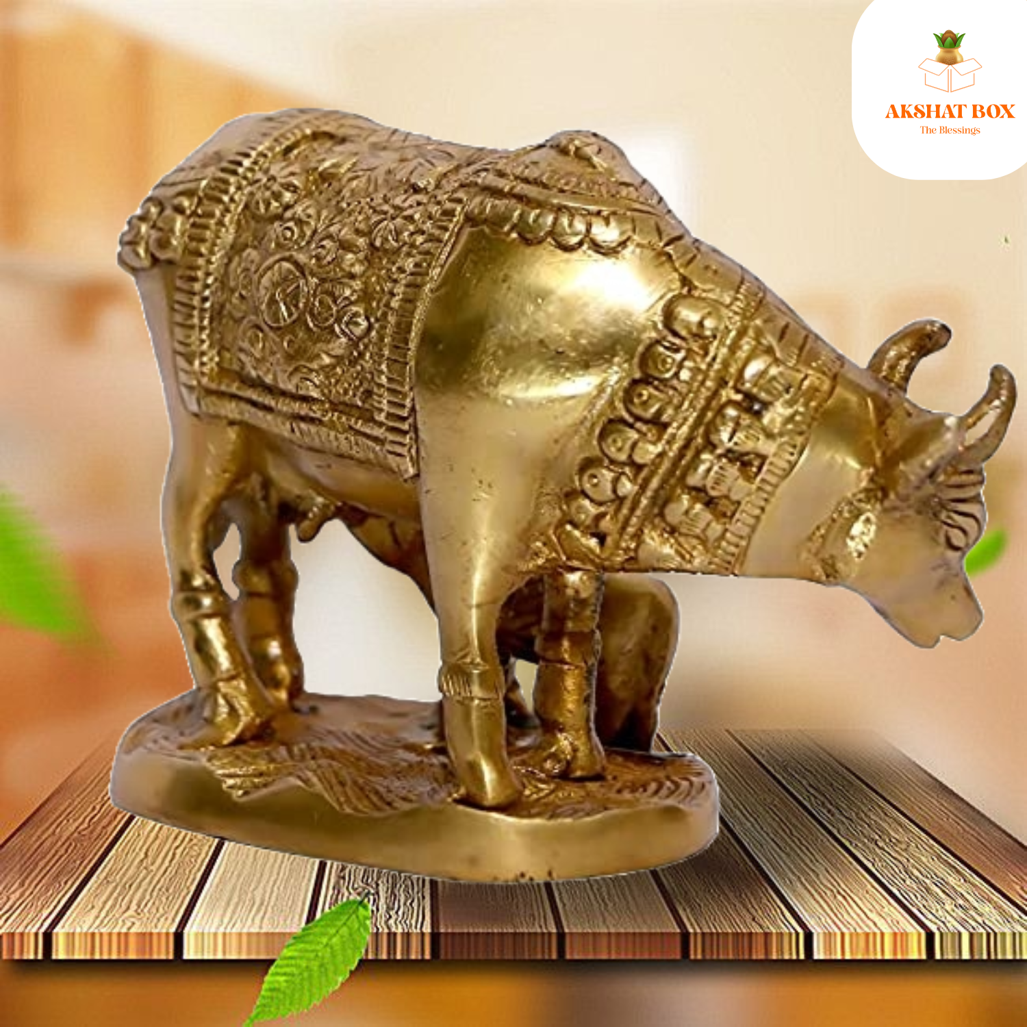 ✨ Invite divine blessings into your home with the Akshatbox Brass Kamdhenu Cow & Calf Idol – Order today!