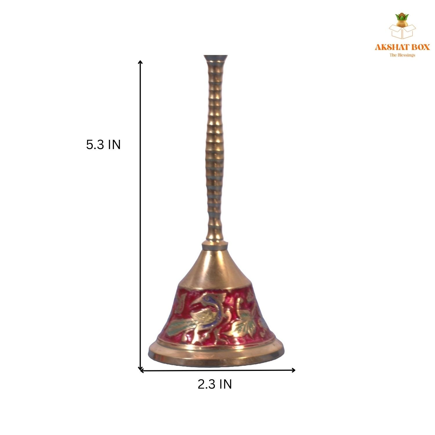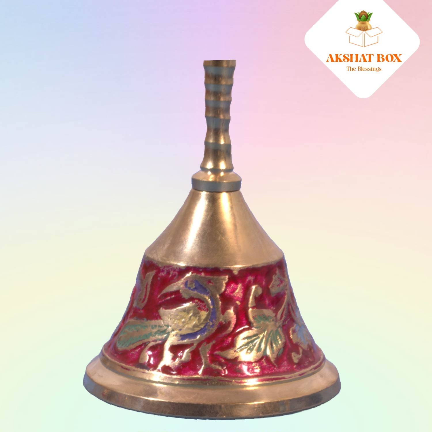 AKSHATBOX Meenakari Design Brass Pooja Bell – Butterfly & Peacock Motif