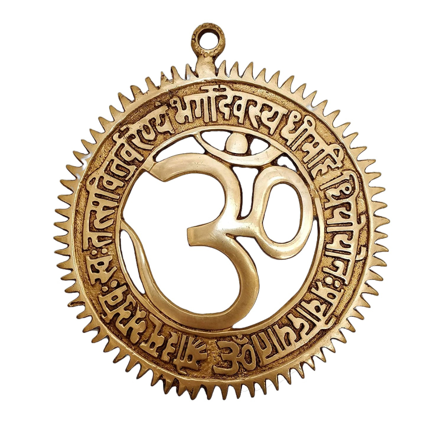 AKSHATBOX Brass Om with Gayatri Mantra Wall Hanging – 8”