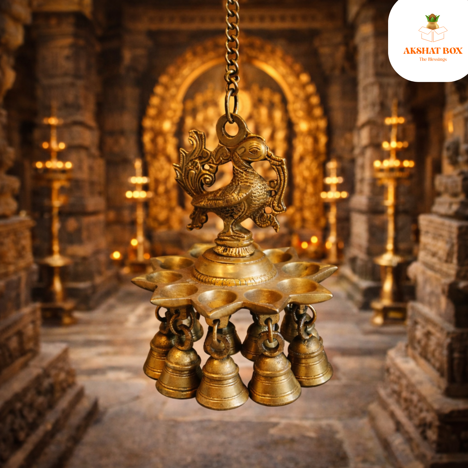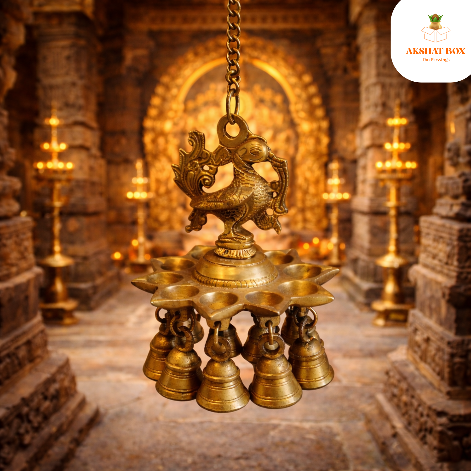 Includes a sacred hanging diya for lighting oil/ghee during rituals