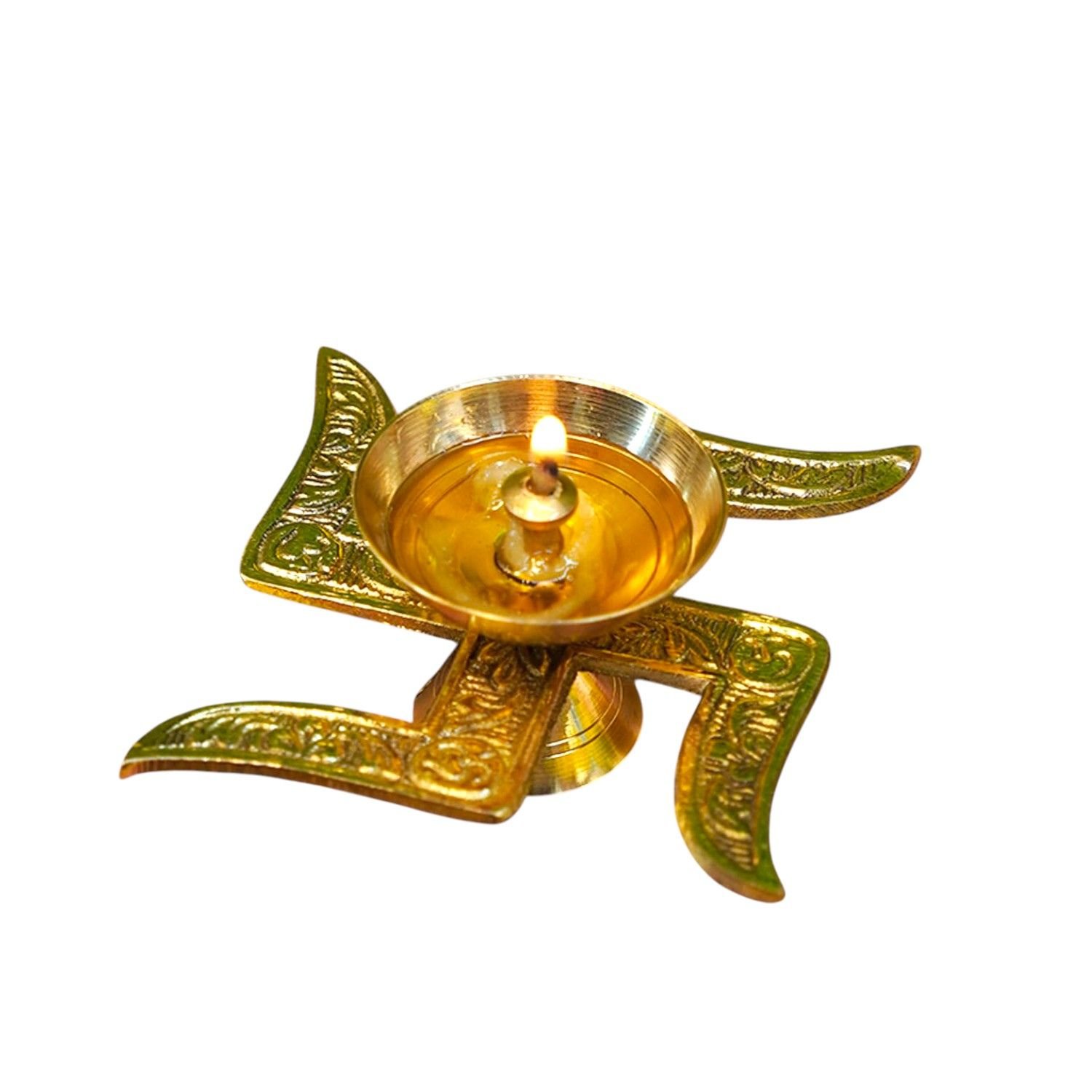 1 Golden Brass Swastik Pooja Diya Gift Set