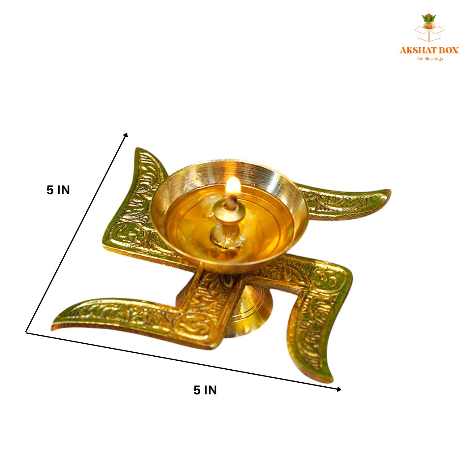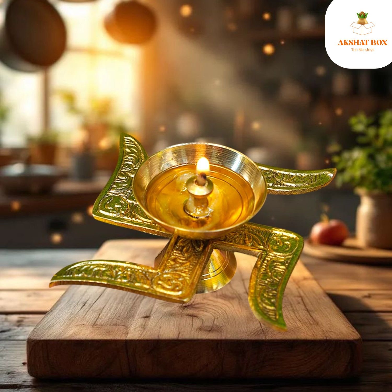 AkshatBox Golden Brass Swastik Pooja Diya Gift Set – A Sacred Symbol of Prosperity & Light