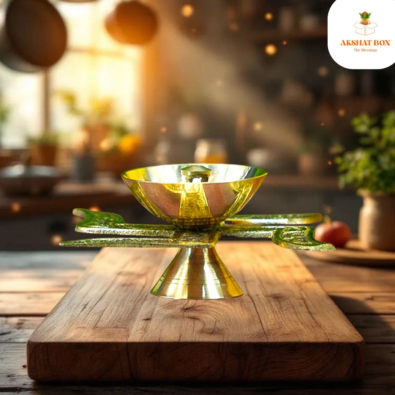 🌺 Bring home the AkshatBox Golden Brass Swastik Diya and invite prosperity, positivity, and divine blessings into your life.or #DivineBlessings #PoojaEssentials #TraditionalElegance