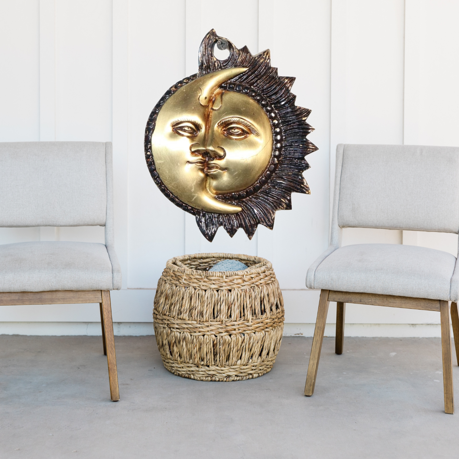 Wall Hanging Brass Moon and Sun Face